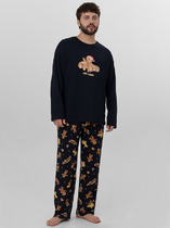 Пижама состоит из футболки и шорт. Футболка прямого силуэта. Горловина округлой формы обработана обтачкой из рибаны. Шов втачивания обтачки по спинке закрыт бейкой из основного полотна. Нижние срезы футболки и рукавов обработаны швом вподгибку.