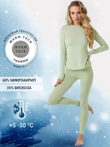 Комплект женский выполнен из трикотажного полотна кулирного переплетения.