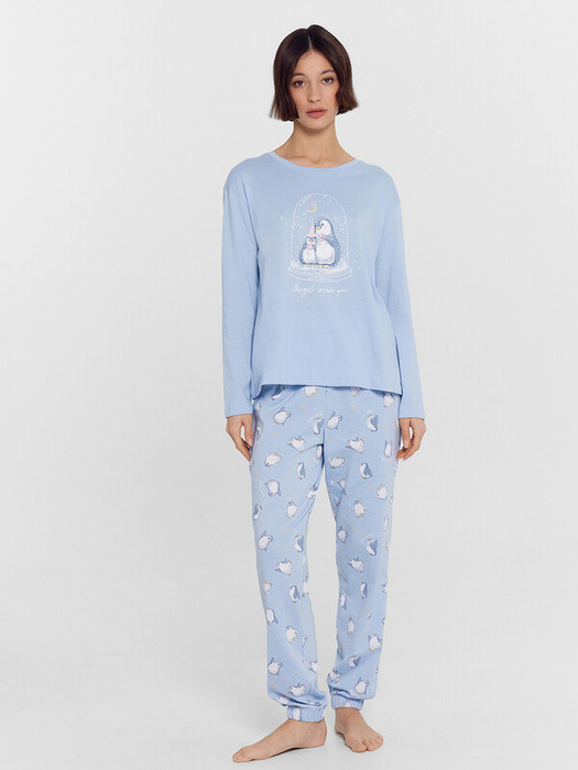 Совместные покупки Симферополь Женская одежда Пижамы, халаты — Mark Formelle КОМПЛЕКТ ЖЕНСКИЙ (ДЖЕМПЕР, БРЮКИ) 592510 592510 голубой +пингвины