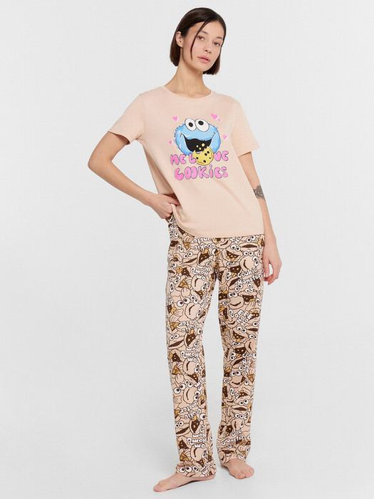 Перед и спинка джемпера цельнокроеные. Вырез горловины круглый, обработан притачной обтачкой из бейки. Рукава втачные короткие одношовные. Низ изделия и рукавов обработан швом в подгибку. Брюки длинные. Пояс цельнокроенный с эластичной тесьмой внутри.