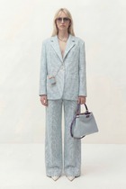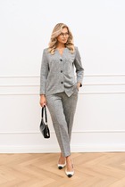 Брюки с посадкой на талии, прямого силуэта. Пояс цельнокроеный с резиной внутри. Низ брюк обработан швом в подгибку.