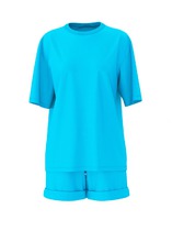Стильный и комфортный женский комплект для спорта, прогулок и домашнего отдыха. В составе полотна преобладает хлопок, полиэстер добавлен для прочности и износостойкости. Укороченный джемпер свободного силуэта отличается спущенной линией плеча, которая дарит особый комфорт. Свободные шорты длиной выше колена имеют высокую линию талии, удобные карманы, эластичную тесьму и регулировочный шнурок в поясе. Рекомендуем!