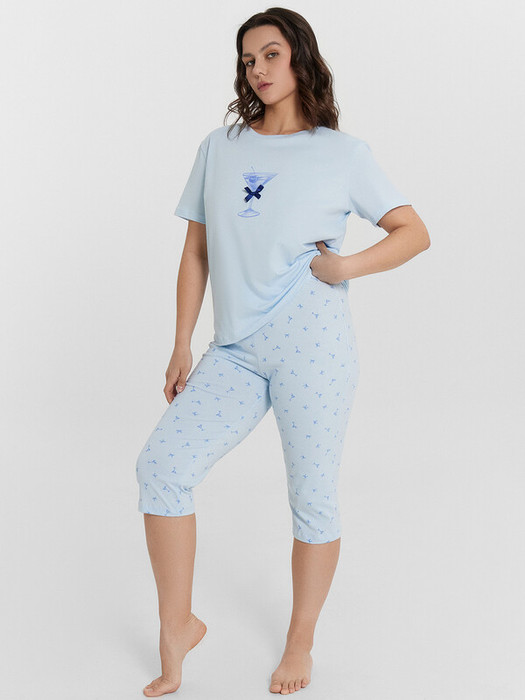 Совместные покупки Симферополь Женская одежда Пижамы, халаты — Mark Formelle КОМПЛЕКТ ЖЕНСКИЙ (ФУТБОЛКА, БРИДЖИ) 592370 592370 голубое небо +ко