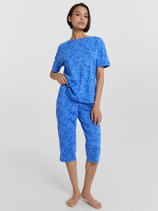 Совместные покупки Симферополь Женская одежда Пижамы, халаты — Mark Formelle КОМПЛЕКТ ЖЕНСКИЙ (ФУТБОЛКА, БРИДЖИ) 592370 592370 веточки на лазур