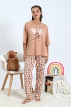 Женская пижама для комфортных домашних образов включает в себя приталенную футболку с круглым вырезом горловины и короткими рукавами, а также брюки свободного силуэта с эластичным поясом и боковыми карманами. Футболка выполнена из рибаны - мягкой и эластичной ткани, отличающейся своим особым плетением, которое обеспечивает комфорт и хорошую воздухопроницаемость. Брюки изготовлены из кулирки - трикотажного материала с гладкой поверхностью, известного своей легкостью и мягкостью. Кулирка прекрасно пропускает воздух и обеспечивает высокий уровень комфорта, не стесняя движений. Благодаря своей прочности, изделия из такого материала хорошо сохраняют форму и цвет даже после многочисленных стирок. Пижама Mark Formelle - это идеальный выбор для создания уютных и стильных домашних образов.