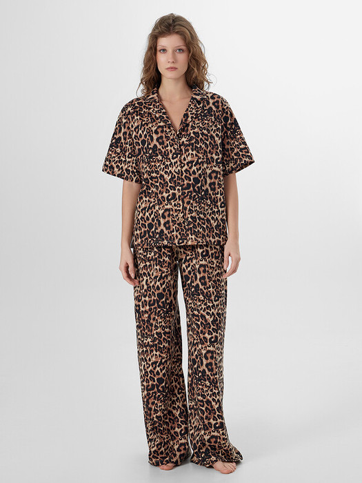 Женский домашний комплект, состоящий из рубашки и брюк, — это идеальное решение для комфортного отдыха и уютных домашних вечеров. Модель выполнена из натурального хлопка, который отличается мягкостью, воздухопроницаемостью и гипоаллергенными свойствами, обеспечивая приятные ощущения на коже и свободу движений. Рубашка свободного силуэта с отложным воротником выглядит аккуратно и стильно, а короткий рукав с немного спущенной линией плеча подчеркивает расслабленный характер изделия. Обработка рукава и низа швом в подгибку делает модель аккуратной и долговечной. Центральная застёжка на пуговицы с петлями добавляет удобства и классического акцента. Брюки свободного силуэта с посадкой на талии обеспечивают комфорт и не стесняют движений. Эластичный пояс мягко фиксируется, а декоративная бейка из основного полотна, протянутая через пробитые петли, добавляет стильный элемент. Низ брюк также обработан швом в подгибку, что сохраняет форму и аккуратность. Комплект идеально подходит для сна, отдыха или домашних дел, сочетая в себе практичность, уют и эстетичный внешний вид.