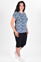 Комплект женский состоит из топа и шорт. Топ прилегающего силуэта. Перед и спинка цельнокроенные. Горловина формы каре. Горловина и проймы обработаны в чистыфй край, нижний срез обработан швом в подгибку. Шорты облегающего силуэта. По переду декоративная отрезная деталь, имитация "гульфика". По верхнему срезу настрочена жаккардовая эластичная тесьма. Нижние срезы обработаны швом вподгибку.