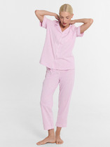 Бриджи с посадкой на талии свободного силуэта. Пояс цельнокроеный с резиной внутри. Низ бридж обработан манжетами с втаченным кантом (атласный по косой).
