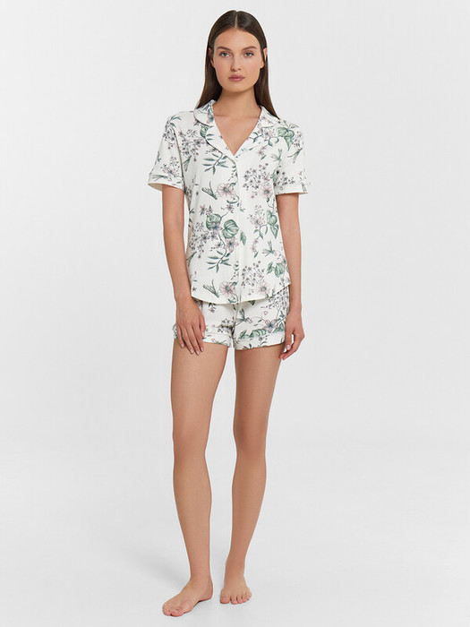 Совместные покупки Симферополь Женская одежда Пижамы, халаты — Mark Formelle КОМПЛЕКТ ЖЕНСКИЙ (ЖАКЕТ, ШОРТЫ) 592478 592478 цветы на св.молочном