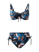Бюстгальтер купальный бандо, со съемными бретелями. Лиф на подкладке, со съемными чашками-вкладышами (GNv-15m). Верхний и нижний срезы обработаны швом вподгибку с эластичной резиновой тесьмой внутри 10 мм. Съемные бретели из основного полотна с эл резиновой тесьмой 7 мм внутри, с регулировкой по длине. Регуляторы (2 шт) и застежки-крючки (4 шт) металлические с гальваническим покрытием. Бретели крепятся к бюстье черз петлю, заготовленную из парфюмерной ленты.