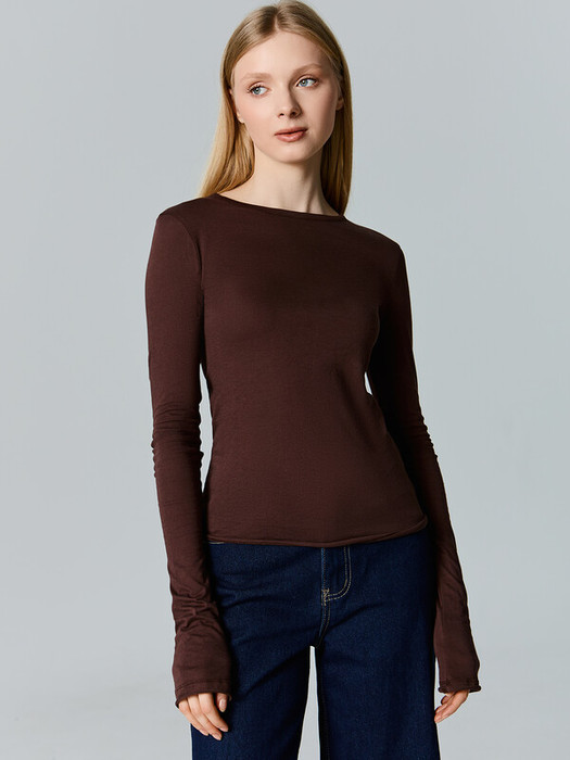 Низ лонгслива и низ рукавов - сырой срез, 3 см от края прострочена двойная отделочная строчка.