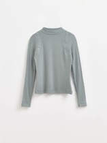 Лонгслив изготовлен из трикотажного полотна кулирка. Лонгсливпрямого силуэта.. Горловина обработана обтачкой с открытым срезом. Шов втачивания обтачки по спинке закрыт бейкой из основного полотна. Рукава втачные длинные. Нижние срезы лонгслива и рукава обработаны швом вподгибку