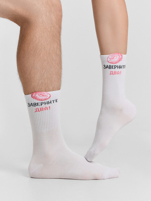 рис.3294 Носок высокий с плотным бортом и рисунком в виде пончика и надписью с элементом пикота на борту.