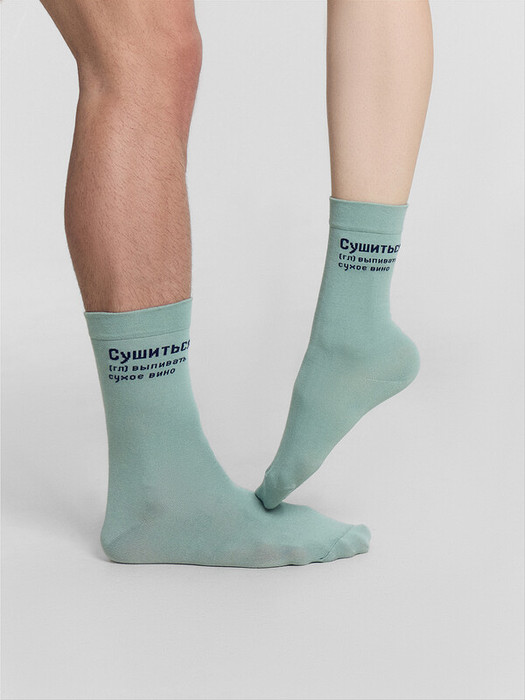 рис.2718 Носки высокие, классические с тонким, гладким бортом с рисунком в виде надписи "Сушиться, (гл) выпивать сухое вино"