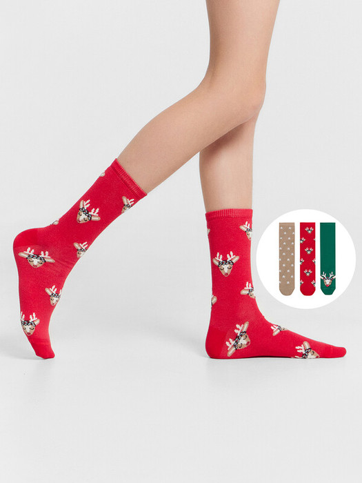 рис.2621 Мультипак из гладких детских носков с рисунком в виде оленят и звезд. Составляющие: 430A-2622 430A-2623 430A-2624
