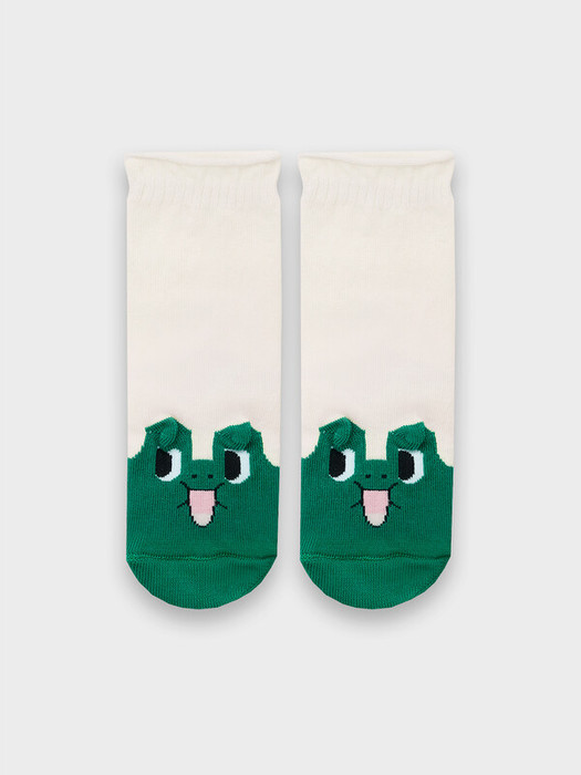 рис.2935  Детские гладкие носки без борта, с рисунком в виде лягушки и цветным мыском.