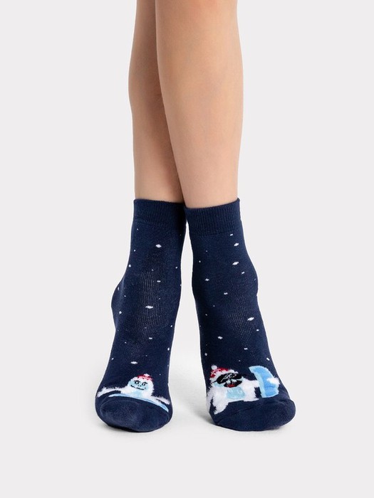 рис.1824 Детский махровый носок с рисунком в виде етти на сноубордах.