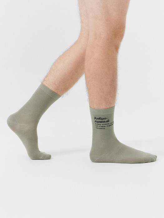 рис.2488 Мужской носок классический, высокий с рисунком в виде надписи "Добро-Душный...".