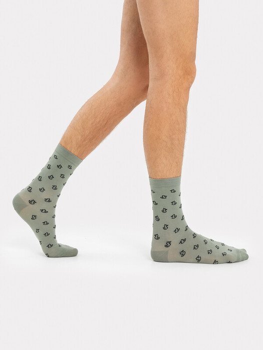 рис.2640 Мужской носок классический, высокий с рисунком в виде уточек.
