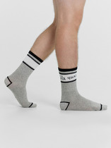 рис.2677 Мужской носок классический, высокий с рисунком в виде надписи "Папа устал" на нижней части следа.
