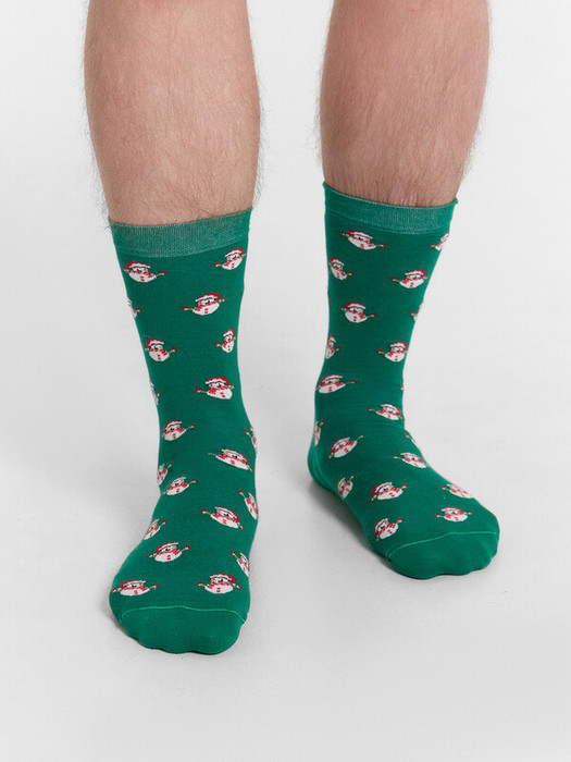 рис.2981 Мужской носок классический, высокий с рисунком в виде снеговичков.