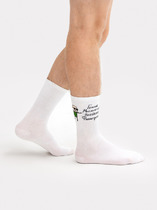 рис.3033 Мужской носок классический, высокий, с рисунком в виде надписи "СТАТУС В ПОИСКЕ".