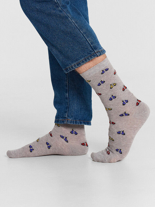 рис.3046 Мужской носок классический, высокий, с рисунком в виде мотоциклов.