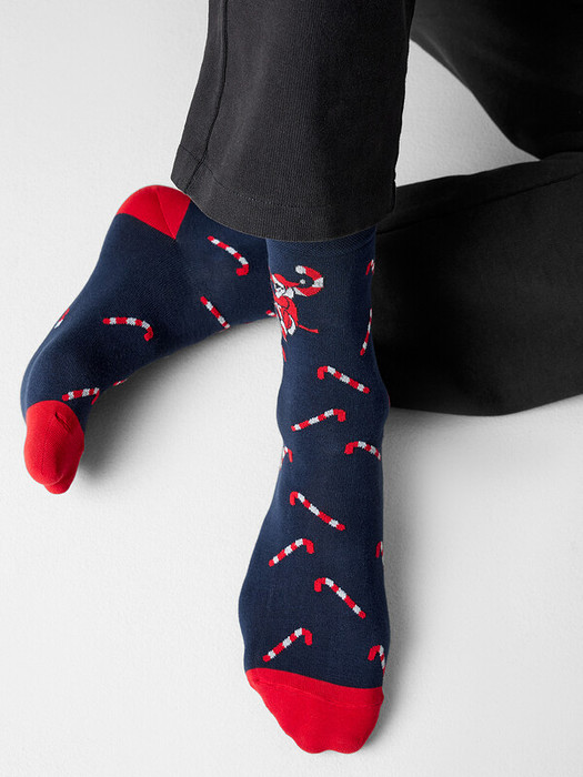 рис.3418 Мужской носок классический, высокий с рисунком в виде скользящего Деда Мороза.