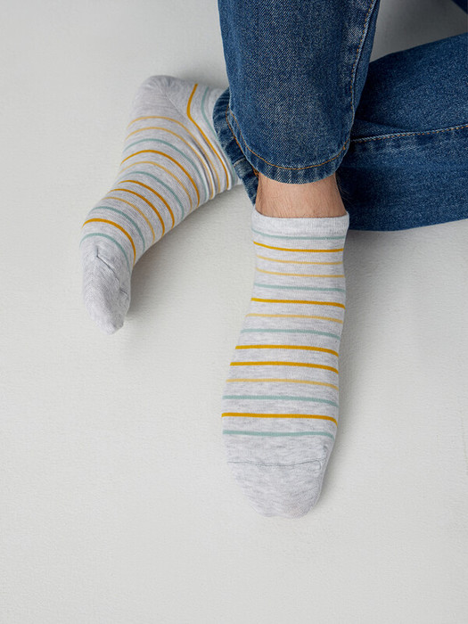 Укороченные мужские носки в полоску — идеальный выбор для комфорта и стиля. Изготовленные из мягкого хлопка, они обеспечивают приятные тактильные ощущения и хорошую воздухопроницаемость, позволяя коже дышать. Благодаря удобной длине модель прекрасно подходит для ежедневной носки, оставаясь практически незаметной в обуви. Классический полосатый дизайн делает носки универсальными, позволяя легко сочетать их с разными стилями одежды. Практичность, качество и комфорт в каждой детали — отличный вариант для повседневного гардероба.