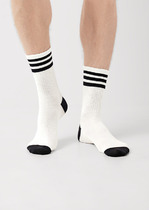 Рис.3084 Мужской носок однотонный средней длины и резинкой на поголенке.