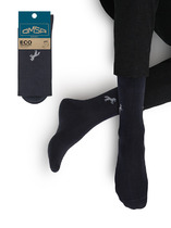 Рис.3107. Мужские носки, средней длины с резинкой на поголенке и рисунком в виде всадника на лошади и цветной полоской на бортике.