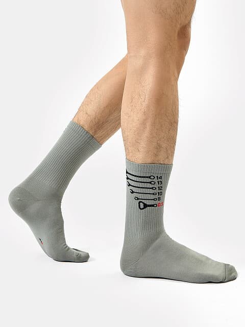 Носки мужские классические высокие с плотным бортом и рисунком в виде гаечных ключей - отличная возможность внести разнообразие и поднять настроение в праздники. Длинные мужские носки с принтом изготовлены из гребенного хлопка - пряжи высочайшего качества, мягкой, тонкой, но прочной. Натуральные волокна отлично пропускают воздух, позволяя коже дышать, и впитывают влагу, дарят ощущение комфорта в течение всего дня. Благодаря небольшому количеству эластана в составе, носки хорошо облегают стопу и сохраняют форму даже после множества стирок. Мягкая эластичная резинка надежно удерживает носки на ноге, но не давит. Пятка и мысок дополнительно усилены, что гарантирует защиту от протирания и повышенную износостойкость - мужские носки с принтом прослужат долго. Купите мужские носки от Mark Formelle для создания стильных и гармоничных образов. Отличный выбор на каждый день. Рекомендуем!