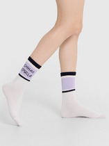 рис.2669 Женский носок с  высоким плотным бортом и рисунком в виде котика с надписью.