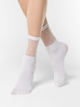 рис.3010 Женский носок с высоким плотным бортом, рисунком в виде котика и надписи.
