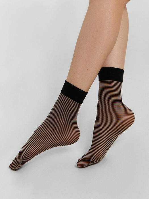 рис.2662 Женские носки высокие классические полиамидные с рисунком в виде поперечной тонкой полоски.  60 DEN