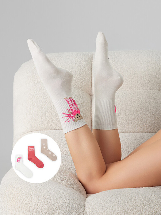 рис.3426 Мультипак из 3-х пар женских носков с высоким плотным бортом и рисунком новогодней тематики. Составляющие: 217A-3427, 217A-3428, 217A-3429