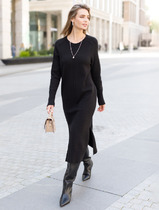Платье свободного силуэта из футера. Платье имеет длину "миди" и удлиненную линию плеча. Изюминка модели – изящные боковые разрезы, которые очень популярны в текущем сезоне. Рукава короткие, вырез горловины круглый. Стильно!