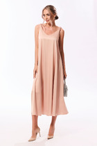 Прилегающее женское платье длиной ниже колена. Выполнено из трикотажной рибаны – в рубчик. Вырез круглый, с чуть удлиненным воротником. Рукава узкие, слегка удлиненные. От линии бедер платье расширяется и завершается асимметричным нижним краем. Красиво!
