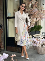 Платье из ткани полуприлегающего силуэта, отрезное по талии. Подрез под грудью со сборкой.