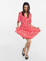 Платье длиной ниже колена.