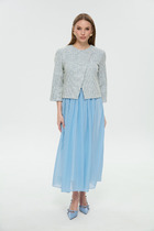 Платье А-силуэта длины мини станет прекрасным выбором для стильного и элегантного образа. Круглая горловина и короткие рукава придают ему классический вид, а передний шов добавляет уникальный акцент. Материал селаник делает это платье особенно мягким и уютным, что идеально подходит для прохладных дней. Этот универсальный и стильный элемент гардероба легко сочетается с различными аксессуарами, создавая разнообразные образы для любого случая.