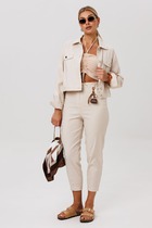 Блузка слегка укорочена, по низу подгибка со шляпной резиной внутри и фиксаторами по боковым швам.
