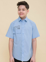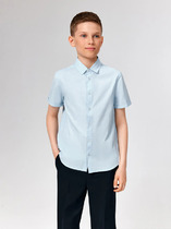Блузка для девочек. свободного силуэта из ткани.  По переду обработана застежка на пуговицы d=10mm и петли. Рукава короткие, втачные, слегка спущены. Нижние срезы изделия и рукавов обработаны швом в подгибку.