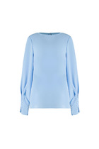 Блузка женская свободного силуэта из ткани. Блузка с цельнокроеной планкой и центральной застежкой на пуговицы. На левой детали переда накладной карман.