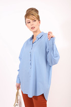 Блузка женская свободного силуэта из ткани. Блузка с цельнокроеной планкой и центральной застежкой на пуговицы. На левой детали переда накладной карман.