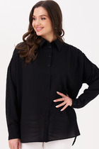 Блузка женская удлиненная прямого свободного силуэта из ткани. Блузка с цельнокроеной планкой и центральной застежкой на пуговицы.