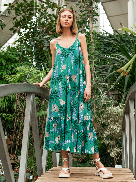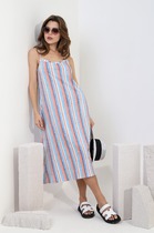 По низу сарафана отрезная широкая рюша. Сарафан длиной миди.