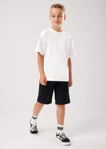 Шорты для девочек. Шорты укороченные, с высокой посадкой. Пояс цельнокроеный с эластичной тесьмой внутри.  Снаружи пробиты петли и втянут шнур 8PXС-2.  В боковых швах кант из трикотажного кулирного полотна. Нижние срезы шорт обработаны швом в подгибку.