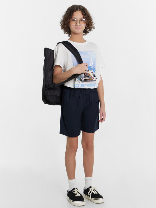 Тканевые шорты длиной до колен с классической линией талии. Силуэт прямой. Спереди есть карманы "хулиганы". Пояс – с эластичной тесьмой внутри. Имитация гульфика. Нижние срезы шортов подложены. Стильные шорты для вашего мальчика!