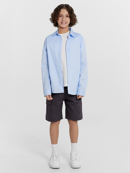 Шорты карго прямого силуэта из текстильного полотна. Посадка средняя. Длина выше колена. Пояс цельнокроеный  с эластичной тесьмой и шнуром внутри. По поясу выполнены три декоративные строчки. На передних деталях брюк настрочен один карман с клапаном, обработаны карманы с наклонным входом от боковых швов. Низ изделия обработан швом в подгибку.